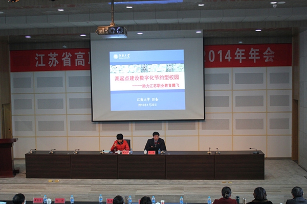 会上,研究会会长单位南京工业职业技术学院副院长朱建国做了江苏省高职后勤研究会2014年度工作报告,全面回顾2014年江苏省高职院校后勤研究会的工作。研究会副会长江苏工程职业技术学院副院长钱国军宣读了《关于表彰首届江苏省高职院校后勤研究优秀论文的决定》,对104位获奖同志进行表彰。秘书长黄在宇对获奖论文进行点评并就就后勤研究会内部运行机制和组织结构,及今后的协会运作的设想做了重点介绍。江南大学副校长、中国教育后勤协会能源管理专业委员会主任、全国高校节能联盟副理事长田备教授作了题为“高起点建设数字化节约型校园,助力江苏职业教育腾飞”的讲座。他从节约型校园建设的重要性、建设中的阻力和困难、建设思路、系统架构、1+1+N+M监管模式、可持续发展注意事项等方面阐述了如何将节约型校园建设思想通过技术革新融入日常工作生活学习中,并和大家一起分享了江南大学在节约型校园建设中的经验。