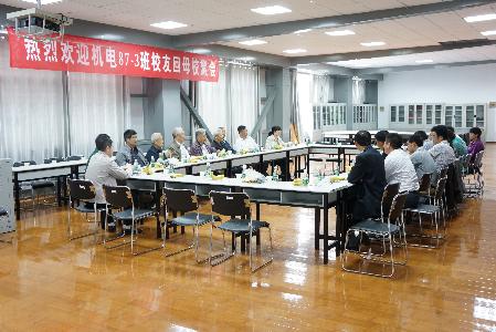 2015年5月2日上午,机电工程学院原机电系机电87-3班十余名校友回到阔别已久的母校,追忆同窗旧事,畅谈人生感悟,展望美好未来。机电工程学院院长张君伟、党总支书记潘峰、和部分原班级任课教师出席了此次聚会。