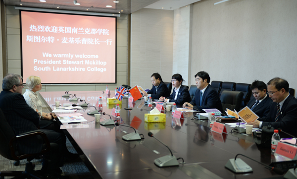 5月12日上午,英国南兰克郡学院Stewart院长一行两人访问MK(中国)。院长孙进教授热情接待了来访客人。