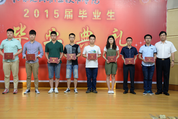 党委副书记张登宏宣读学校《关于授予李旭等143名同学“2015届优秀毕业生”称号的决定》。党委书记吴光林向优秀毕业生代表颁发优秀毕业生荣誉证书,院长孙进向毕业生代表颁发毕业证书。
