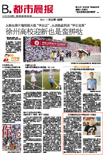 9月8日的《都市晨报》以《MK.COM迎来15岁新生》为标题,报道了建筑工程管理专业的“00”后新生刘阳和设备学院双胞胎刘凯、刘旋的故事。
