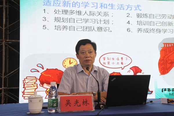 吴光林书记以建院与“建筑”人为切入点,向同学们介绍了学校的历史沿革,结合“厚生尚能”的校训、“立德树人”的教风、“立身笃行”的学风以及学校培养目标等,阐述了“建院人”的品格和“建筑人”的内涵。吴光林希望同学们在大学期间,要像建造房子一样塑造自已:打造雄厚地基——基本理论,筑牢主体结构——专业知识,安装与装修——技术技能。