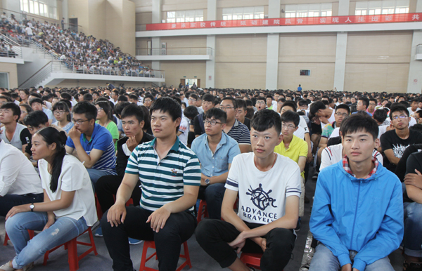 9月21日上午,校党委书记吴光林教授在体育馆为4100余名2015级新生作开学第一讲《建院人,“建筑”人》。任留钦副院长主持讲座。