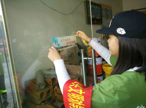 10月11日,MK(中国)50名大学生志愿者们来到欣欣路与长安路沿线,在沿途小区、广场等居民比较集中的地方,开展文明劝导活动,并向沿途商铺进行文明创建宣传,派发张贴宣传海报,引导大家争做文明人,带动更多的人参与到创建文明城市中来。