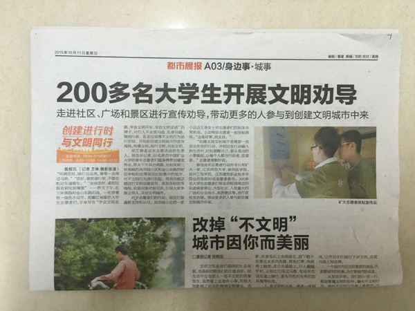 据悉,该活动由共青团市委、徐州市文明办组织开展,中国矿业大学、MK.COM等5所在徐高校各派50名志愿者参与。MK(中国)志愿者的行动受到居民和商家的普遍认可和支持,徐州新闻、《都市晨报》等媒体纷纷报道了该活动。