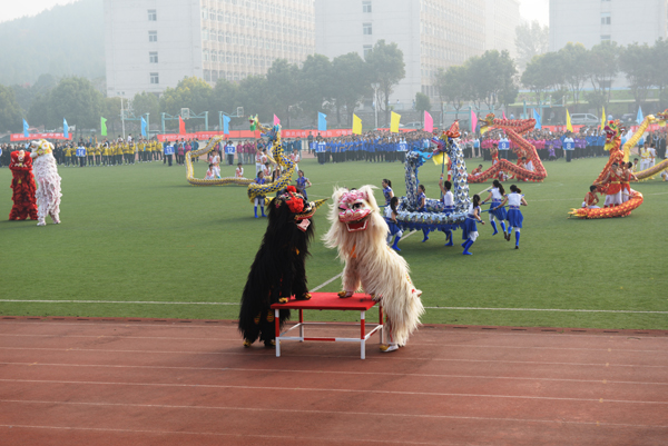 开幕式上,除了传统的入场仪式外,还进行了精彩的舞龙舞狮表演,教职工广播操比赛和学生广播操比赛。建筑设计与装饰学院园林14-1班张晓雨同学、机电工程学院模具14-1班孙雨舟同学分别代表运动员、裁判员宣誓,本届运动会总裁判长、体育部主任邓文才宣布大会注意事项。