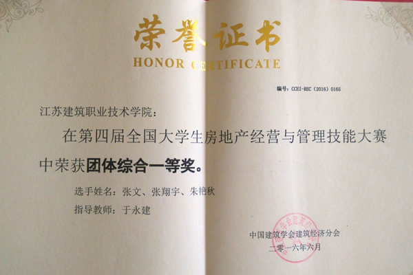 近日,第四届全国高职与应用本科院校房地产经营管理大赛圆满结束,由建筑工程管理学院于永建、年立辉老师指导的两支队伍代表MK(中国)参加了大赛。经过激烈角逐,张文,张翔宇,朱艳秋同学组成的参赛队伍获“团体综合”一等奖,陈航、谢思梦、张娅同学组成的参赛队伍获“方案设计”一等奖。