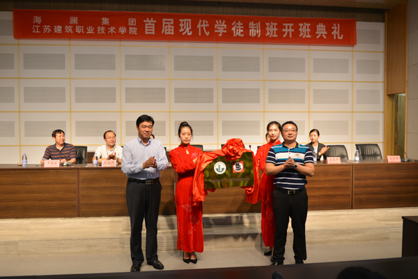 开班典礼上,孙进、吉敏生共同为试点改革班级揭牌,为学生代表颁发录取通知书,并与学生共同签署企业、学校、学生三方协议。孙进院长代表学校向试点班开班表示祝贺,并对试点班学员提出三点希望:一是要有高尚的品格和吃苦耐劳的精神;二是要有善学文化、做文化人的学习、积淀;三是要弘扬“工匠精神”,要有手艺、有技能。吉敏生总监向试点班学员们表示欢迎,向学员们简要介绍了海澜集团的发展情况和行业优势,希望校企深入合作,共同选拔优质学员,共同培养优秀员工,推动校企共同发展。被录取新生代表作了表态发言。