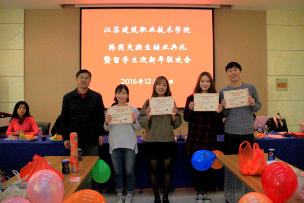 副院长曾凡远代表学校祝贺来自韩国交通大学的学生完成一年交换学习顺利结业。希望他们回国以后勿忘江苏建院的学习生活、勿忘与江苏建院师生的情谊,继续学好汉语,学习中国文化,做好中韩文化交流的友好使者,将中国改革开放成就和经济社会发展的情况及在中国的所见所闻与家人、朋友分享,宣传中国、宣传徐州、宣传江苏建院,为推动中韩两国经济、文化交流做出积极贡献。同时希望全校所有留学生珍惜在江苏建院的学习机会,遵守中国法律和学校纪律,主动与中国学生交朋友,刻苦学好汉语,尽快通过汉语水平考试,为今后转入专业学习打下坚实基础。