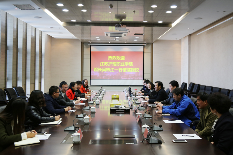 3月1日江苏护理职业学院吴彬江院长一行5人来校交流,院长孙进教授代表学校热情接待了来访客人。