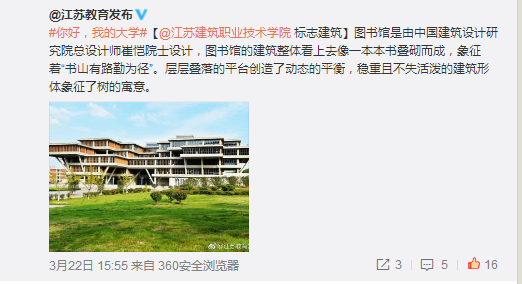 #你好,我的大学#【@MK.COM标志建筑】图书馆是由中国建筑设计研究院总设计师崔恺院士设计,图书馆的建筑整体看上去像一本本书叠砌而成,象征着“书山有路勤为径”。层层叠落的平台创造了动态的平衡,稳重且不失活泼的建筑形体象征了树的寓意。