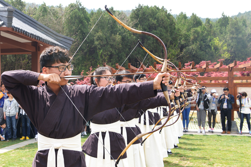 学术报告会上,与会专家围绕中日韩弓箭制作选材、制艺、源流、技法及礼射精神价值进行深入讨论。这也是近百年来中日韩三国礼射专家首次齐聚会场进行礼射文化交流研讨。