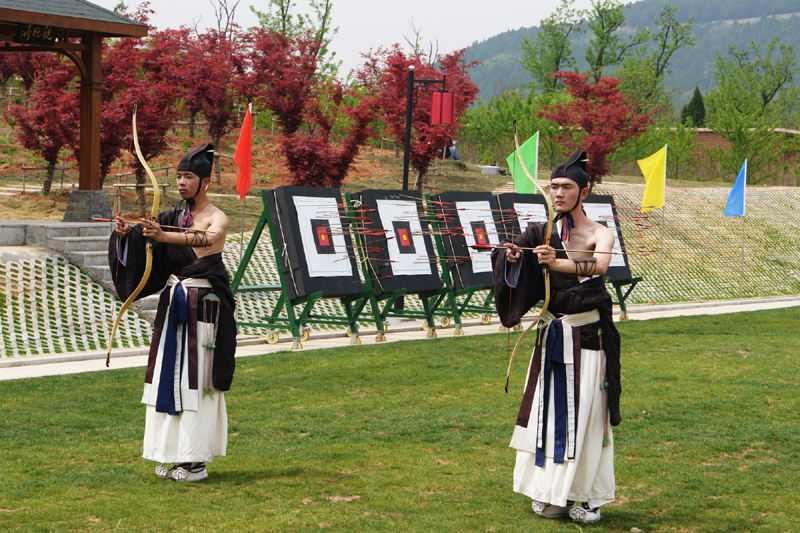 孙进、张颂仁、徐开才、郭蓓、入江康平、罗永一齐射鸣镝箭,启用射艺场