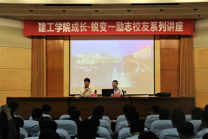 4月17日晚上七点半,“建工学院2017年成长•励志•蜕变——专家校友讲坛”系列讲座第二场在校学术报告厅开讲。本期讲坛主讲嘉宾赵家鹏是建工学院土建专业(现建筑工程技术专业)1992级优秀校友,现任中煤建筑安装工程集团有限公司技术研发中心总经理,高级工程师。讲座由建工学院副院长孙武老师主持,建工学院15级建筑工程技术专业各方向的学子认真聆听了本次讲座。