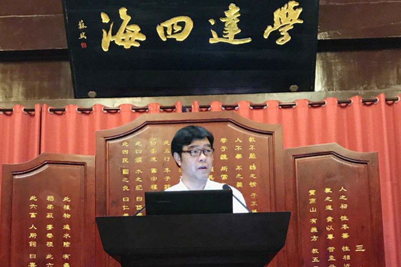 6月10日上午,院长孙进教授应徐州云龙书院邀请,做客汉学大讲堂,开讲毛泽东诗词鉴赏。初夏的大雨虽然给出行带来不便,但讲座现场吸引了众多对毛泽东诗词感兴趣的市民听众。开讲前半小时,全场已座无虚席。