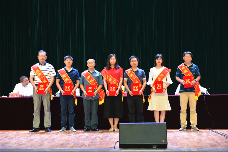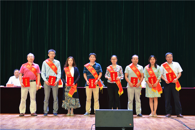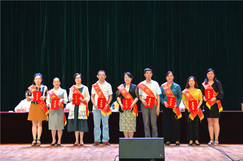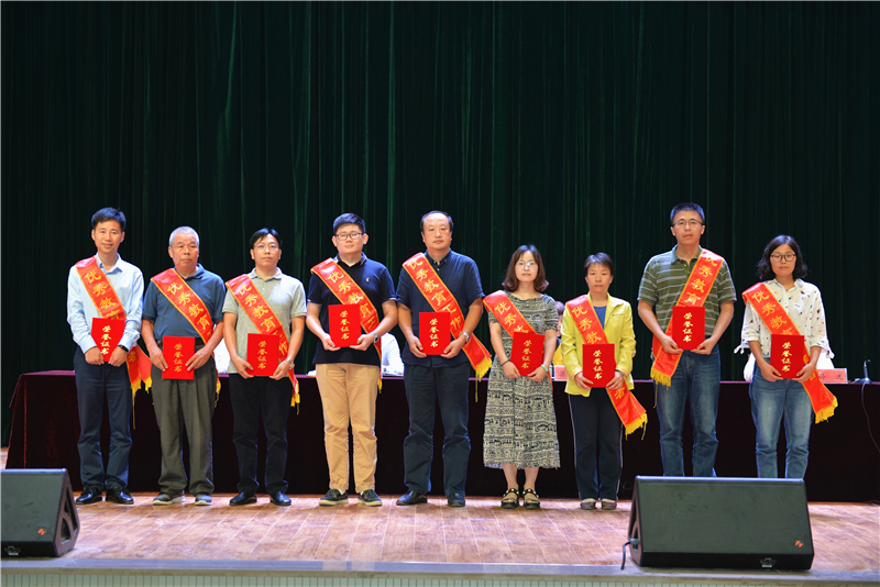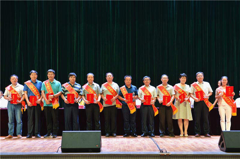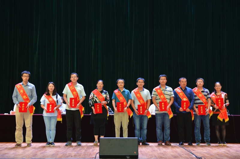 校领导为从教30周年教师、师德十佳标兵、优秀教师、优秀教育工作者和优秀辅导员颁奖。党委副书记梁惠主持大会。纪委书记魏勇宣读表彰文件。教师代表袁涛作了发言。