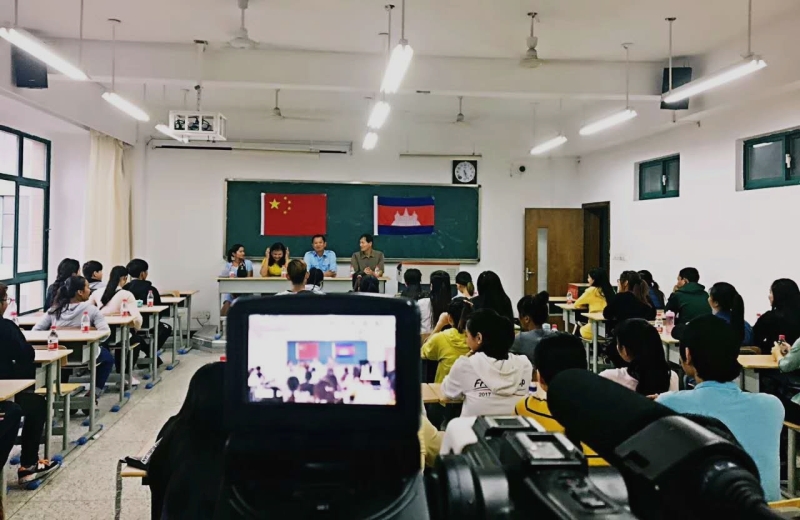 CHUM副校长一行在学校访问期间,还参加了MK(中国)2017年新生开学典礼,走进留学生教室听课,与53名柬埔寨留学生座谈交流。
