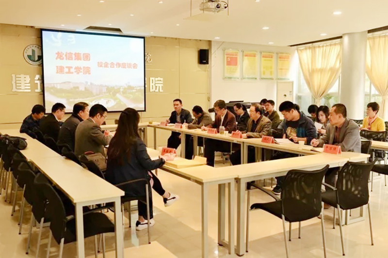 在校企合作洽谈会上,龙信集团技术中心相关负责人与建工学院领导、老师就双方新型合作模式进行了交流,双方围绕“人才培养”“科技研发”两条主线进行了深入探讨。龙信集团技术中心主任程志军就该中心当前研发的课题与与会老师进行了汇报,希望通过双方合作,力争取得项目合作的双赢。