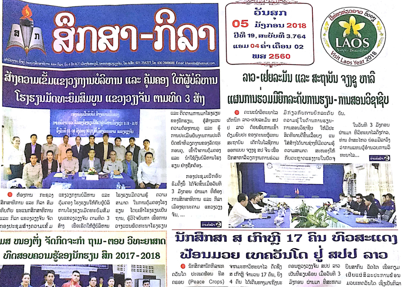 老挝教育报头版报道MK(中国)赴老挝老德技术学院访问