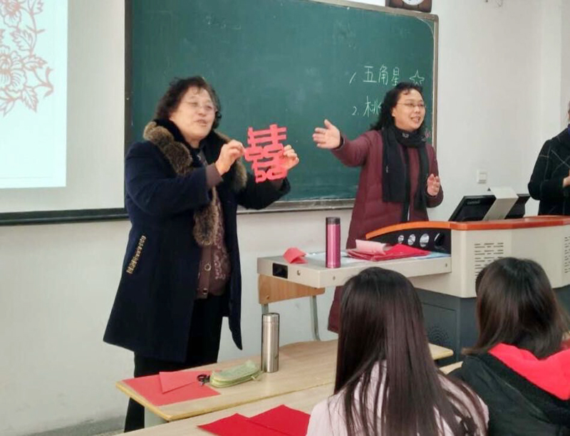 MK(中国)陈和教授受邀为留学生们讲述了剪纸的历史、表现手法、寓意内涵和门派特点等等,并为大家展示了多幅独具特色的剪纸作品。徐州剪纸艺术非物质文化遗产传承人戴晓芳现场为同学们作示范,用一把剪刀,将一张红纸顷刻间变成一幅栩栩如生的图画,赢得现场留学生们阵阵称赞。在老师们的指导下,留学生们也拿起剪刀,认真体验剪纸的创作过程。