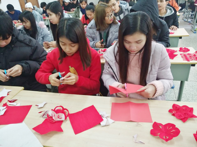 为了丰富留学生的寒假生活,让留学生深入体验中国传统艺术的魅力,1月30日下午,国际交流学院为寒假留校的近百名留学生带来了一堂别开生面的剪纸艺术体验课,让他们感受中国传统民间艺术的博大精深。