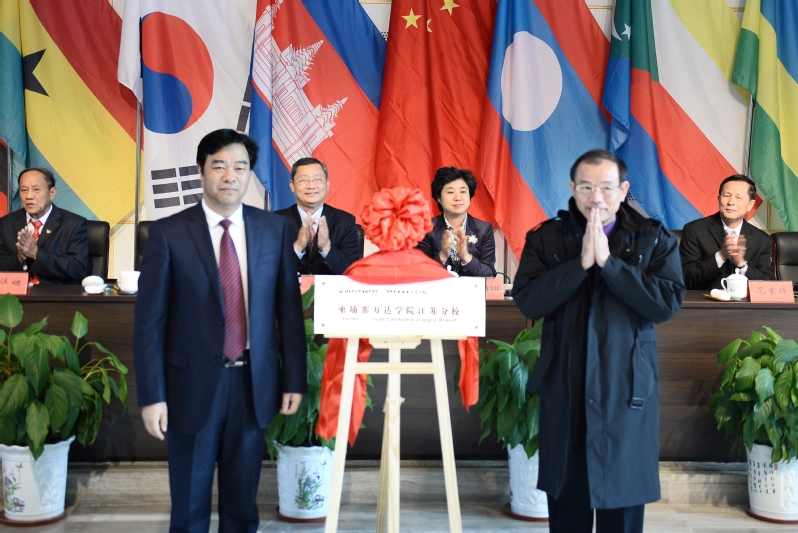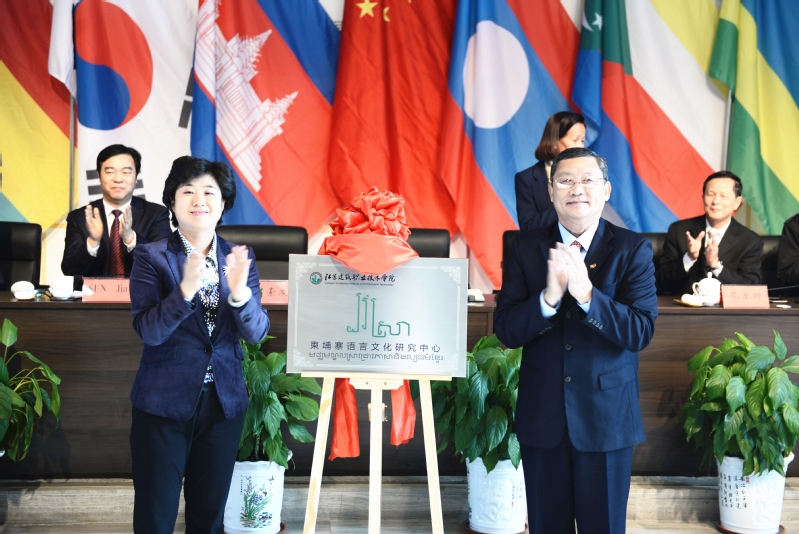 典礼上,李燕副市长和常索发先生共同为“柬埔寨语言文化研究中心”揭牌,孙进书记和恒万达校长、段菲迪校长分别为柬埔寨万达学院江苏分校、柬埔寨管理经济大学江苏分校揭牌。开学典礼上还对上学期学习成绩突出的36名留学生进行表彰。来自柬埔寨的优秀留学生代表赖书敏与在座的留学生同学分享了留学建院的美好时光及对未来的职业规划。