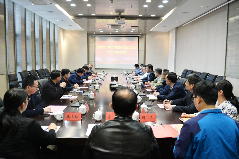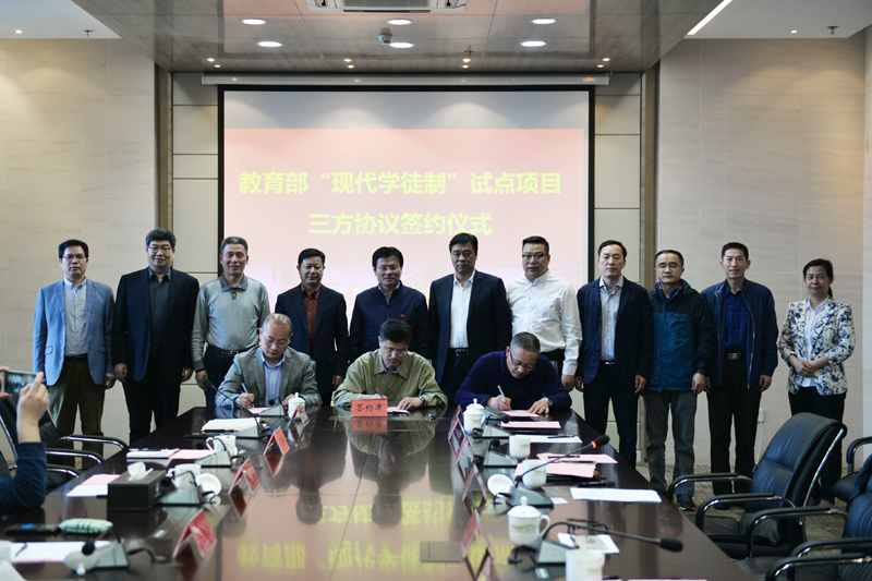 曾凡远副院长与徐州经济开发区高级中学、徐州徐工环境技术有限公司共同签署《“徐工环境”现代学徒制“试点班”三方合作协议书》。与会高级中学、企业代表对MK(中国)搭建的政校企合作平台表达了感激之情,充分肯定了MK(中国)的办学水平和人才培养质量。(机电学院 胡兵)