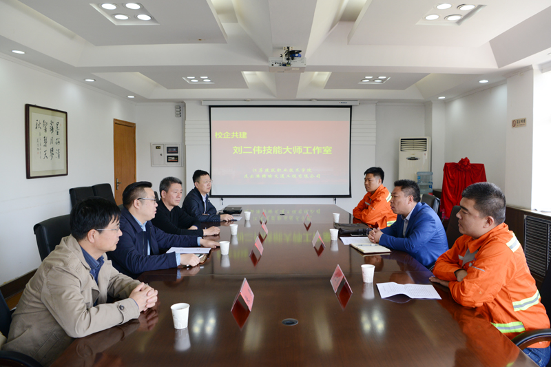 万发波总经理简单介绍了技能大师刘二伟同志成长经历以及取得的一些成就,希望以“刘二伟技能大师工作室”为纽带进一步深化校企合作,并对如何建设技能大师工作室并发挥工作室的辐射作用谈了几点建议。“江苏技能大师”刘二伟对工作室的成立表示感谢,并郑重承诺将以此为平台,尽快融入到学校的人才培养中,利用自己在实际工作中积累的经验加强学生的培养,带好校企双“徒弟”,积极开展技术攻关,共同解决教学、生产过程中的难题,提升行业服务能力和行业影响力。