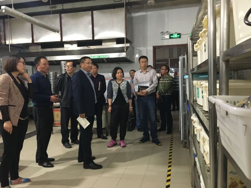 会议第一阶段,蒋兆峰副院长带领参会人员深入到各食堂现场检查,对学生食堂的环境卫生、人员配备、食品质量、设施设备、食品切洗功能分区、饭菜留样、原材料供应等重点环节进行了认真检查及指导,各食堂相互学习优秀做法和经验。