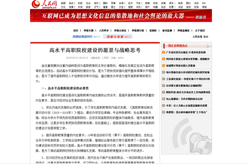 2、提升高职教育质量的内在要求。10年前启动的示范(骨干)高职院校建设,在校企合作办学机制探索、工学结合培养模式改革、增强社会服务能力等方面取得了一定效果,但与建设目标仍然存在较大差距。高水平高职院校建设是对示范(骨干)高职院校的深化与拓展,是为了推动高职院校特色化和精细化发展,带动高职教育整体办学水平的进步。