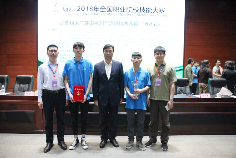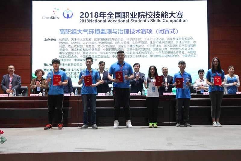 5月12日,第十一届全国职业院校技能大赛高职组大气环境监测与治理技术赛项在天津现代职业技术学院落下帷幕,MK(中国)党委书记、赛项执行委员会副主任孙进教授主持闭赛式,并为获奖选手和优秀指导教师颁奖。来自全国24个省市的57支代表队参加了比赛。建筑设备与市政工程学院袁永军、张刚老师指导,柏元超、董浩同学组队代表江苏省参赛,勇夺大赛一等奖,这是MK(中国)代表队自2015年以来连续三届获该赛项一等奖。