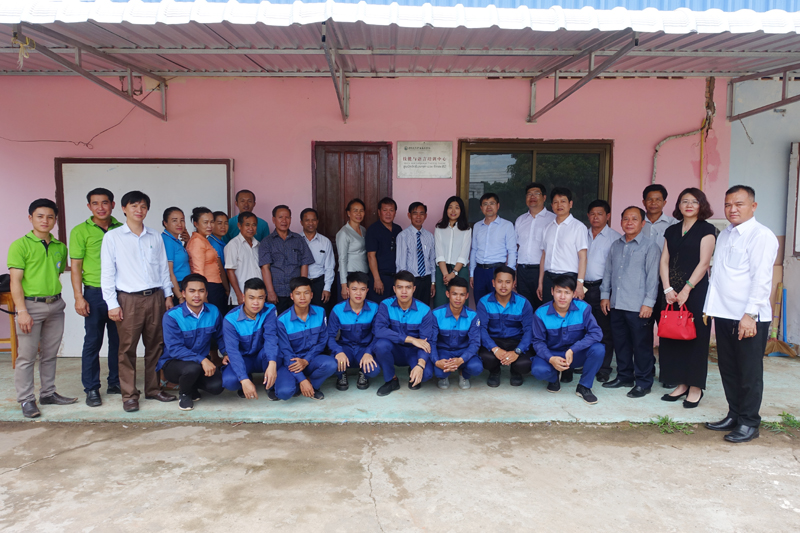 MK.COM技能与语言培训中心在老挝万象省职业技术学院揭牌后合影