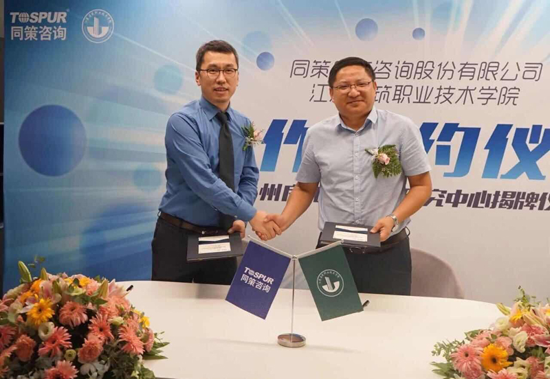 签字仪式上,蒋兆峰副院长代表学校对与同策集团的多年富有成效的合作和达成深度合作协议表示感谢。他说,此次合作不仅能配合企业打造人才梯队建设,双方实现互通有无、共同提高,更使在校学生合理规划职业发展道路、为今后踏入社会奠定基础。赵钢副总经理指出,同策集团以同心圆为战略的多元化业务结构布局涉及多层次多领域,在发展壮大的过程中需要源源不断新生力量的涌入,而江苏建院恰能为此提供诸多精英人才备选,同时,中心专家组老师的丰富经验也能为在校学生指点迷津。集团其他领导也从不同角度对企业发展历程和特色进行了介绍,校企双方领导还为研究中心专家代表颁发了聘书。