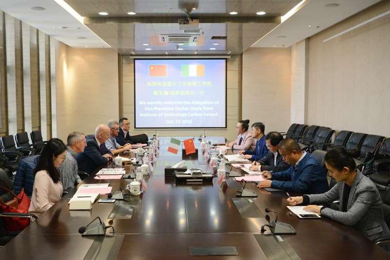 10月23日,爱尔兰卡洛理工学院外事副校长迪克兰•道尔先生、建筑系高级讲师帕斯克•哈特、电气工程系高级讲师基思•史密斯及中国办事处相关负责人一行五人来MK(中国)进行交流访问。MK(中国)副院长曾凡远,以及国际合作交流处、建筑管理学院相关负责人与来访客人进行会谈。