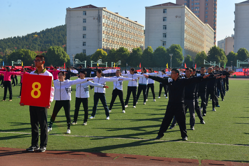 开幕式上,各二级学院逐一创意入场展示,校舞龙舞狮俱乐部龙狮群舞表演助阵,教职工代表队与18级新生代表队分别进行广播操比赛。钢构17-3班韩豹同学代表运动员宣誓,房管17-1班李恩羽同学代表裁判员宣誓,本届运动会总裁判长、公共基础学院院长邓文才宣布大会注意事项。