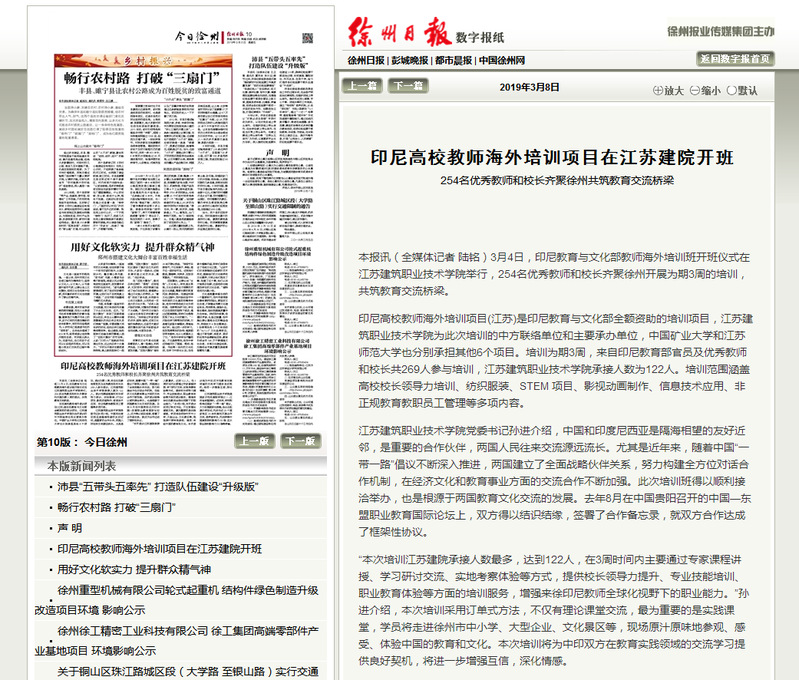 “本次培训江苏建院承接人数最多,达到122人,在3周时间内主要通过专家课程讲授、学习研讨交流、实地考察体验等方式,提供校长领导力提升、专业技能培训、职业教育体验等方面的培训服务,增强来徐印尼教师全球化视野下的职业能力。”孙进介绍,本次培训采用订单式方法,不仅有理论课堂交流,最为重要的是实践课堂,学员将走进徐州市中小学、大型企业、文化景区等,现场原汁原味地参观、感受、体验中国的教育和文化。本次培训将为中印双方在教育实践领域的交流学习提供良好契机,将进一步增强互信,深化情感。