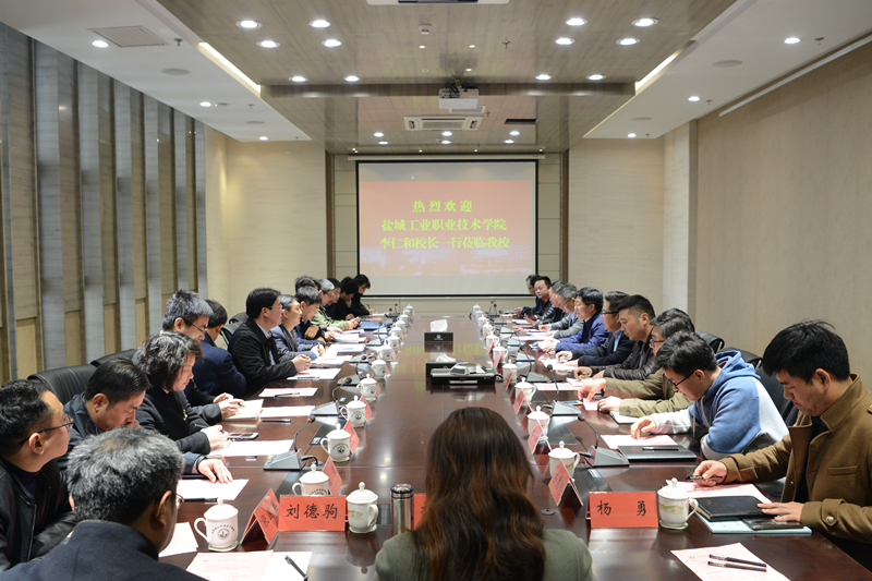 3月29日上午,盐城工业职业技术学院院长李仁和、党委副书记张林龙、副院长蔺俊等一行16人来校考察交流。学校院长沈士德、副院长刘海波与来访客人在图书馆一会议室进行交流座谈。