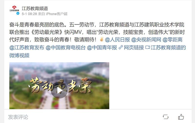 奋斗是青春最亮丽的底色。五一劳动节,江苏教育频道与MK.COM联合推出《劳动最光荣》快闪MV,唱出“劳动光荣,技能宝贵,创造伟大”的新时代好声音,致敬奋斗的青春!敬请期待!