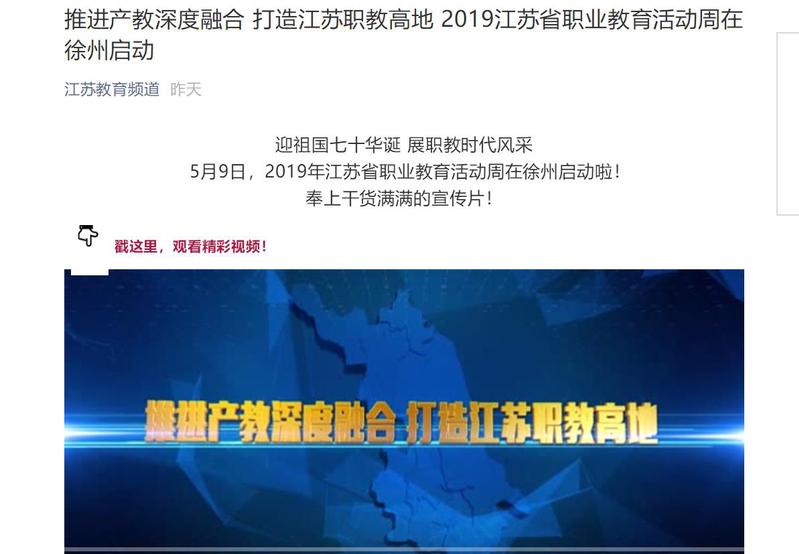 迎祖国七十华诞,展职教时代风采。5月9日,2019年江苏省职业教育活动周在徐州启动啦!