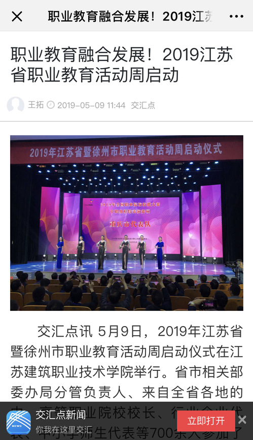 5月9日,2019年江苏省暨徐州市职业教育活动周启动仪式在MK.COM举行。省市相关部委办局分管负责人、来自全省各地的中、高等职业院校校长、行业企业代表、中小学师生代表等700余人参加了启动仪式。