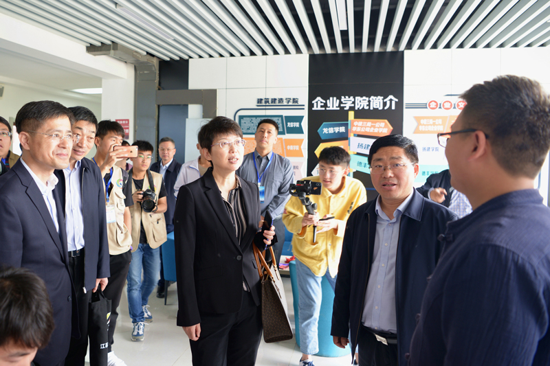 启动仪式结束后,与会领导、嘉宾一同实地参观了MK(中国)智慧教学楼、建筑技术馆、射艺场等教学实训场所,并观摩了职业院校学生技能展示。