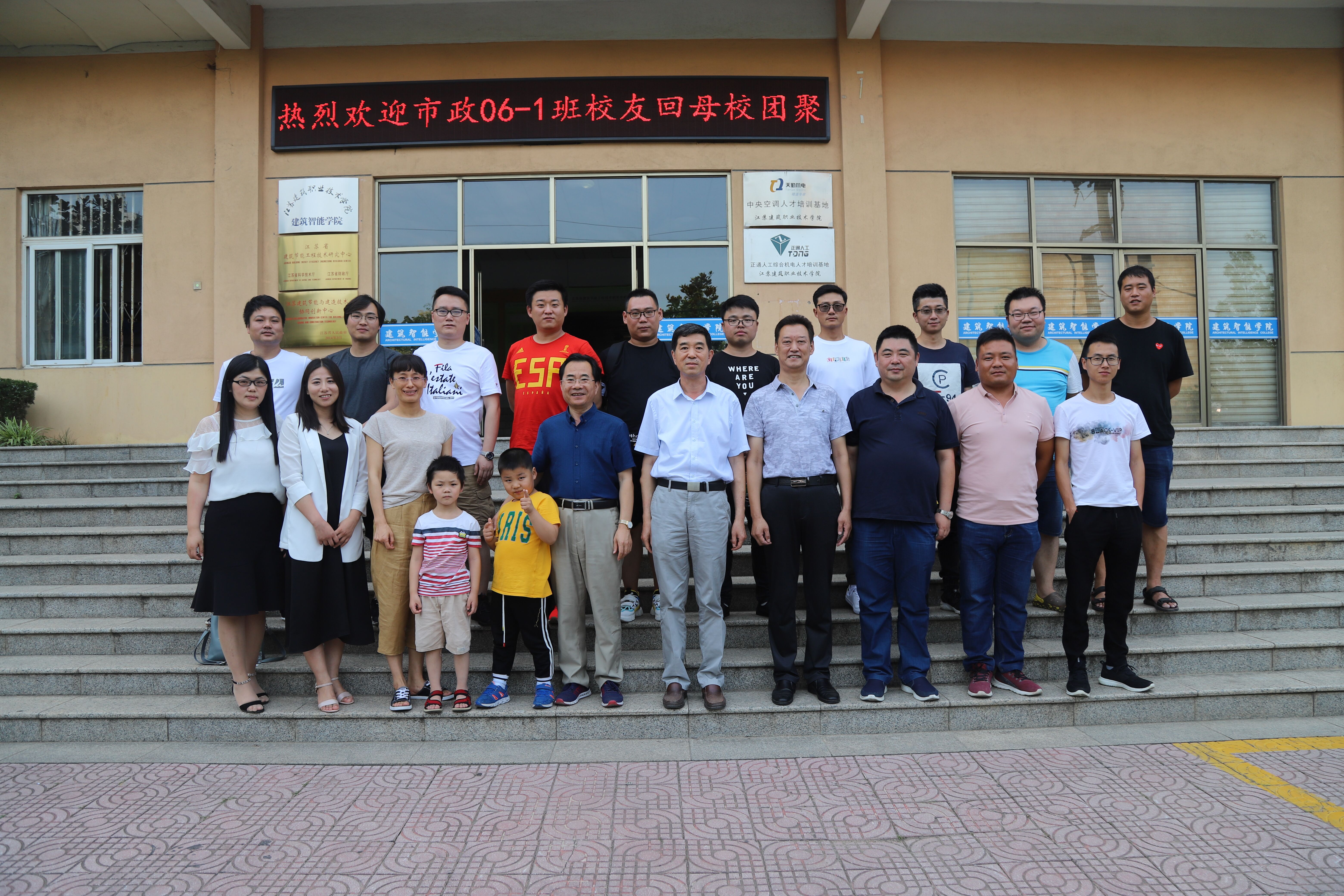 2019年6月22日,市政06-1班校友毕业十周年回母校聚会,大家齐聚建筑智能学院会议室与老师座谈交流,学院丁维华院长、龚媛媛副书记、班主任白建国、王正扬老师及相关专业老师参加了此次座谈。座谈会上,丁维华院长致了热情洋溢的欢迎词,介绍了学院的基本情况、专业发展情况,龚媛媛副书记介绍了学校近十年的变化、学生生活条件的改善,并就学校即将到来的四十周年校庆发出邀请,希望大家积极参与,为母校建言献策。随后,同学们向老师汇报了自己近十年的工作、生活情况,大家感慨在建院的大学时光美好而短暂,感谢母校和老师的培养,才有了他们今天的美好幸福生活。最后,大家在建环楼楼下合影留念。