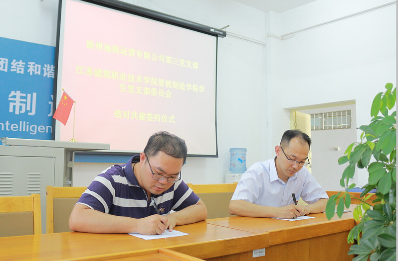 6月20日下午,智能制造学院党总支学生党支部与徐州地铁运营有限公司第三党支部在学院会议室开展结对共建签约活动。制造学院学生党支部书记李珂,支部教师党员,全体学生党员与该公司支部书记王佳祥共同参加此次活动。