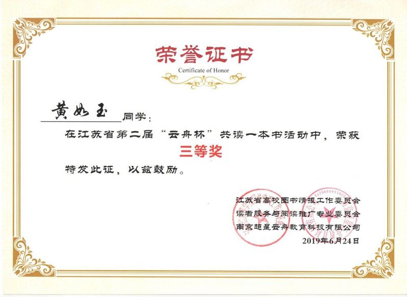 近日,江苏省高校图工委读者服务与阅读推广专委会在全省高校系统内组织的第二届江苏省高校“云舟杯”共读一本书活动结果揭晓,MK(中国)学子吕书宇荣获“打卡状元”、黄如玉荣获“三等奖”。