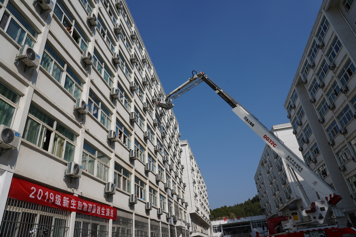 现场通过楼宇疏散逃生、高空云梯救人和灭火器灭火三个演练科目,使学生了解并掌握火场逃生和灭火器灭火的基本技能,整个演练过程持续了约2小时,取得了预期效果。二级学院副书记和新生班级辅导员、班主任及有关工作人员到场组织并参加了演练活动。