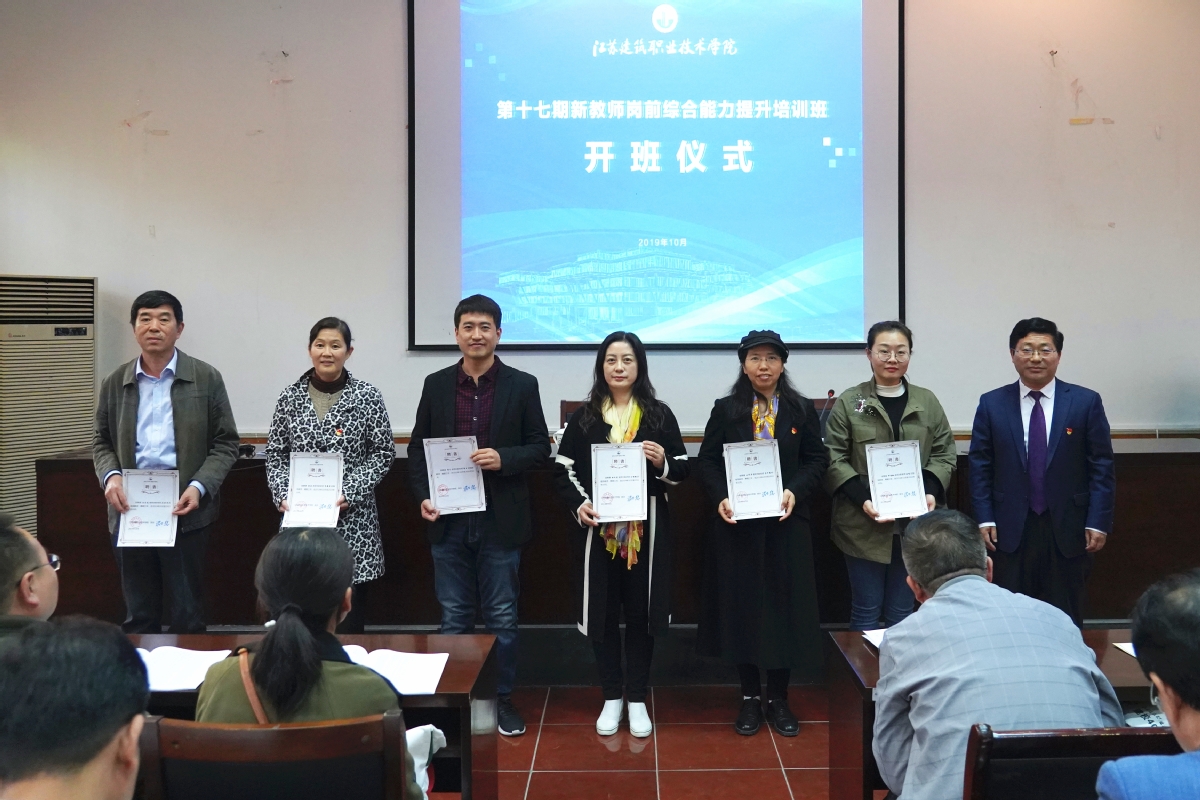 开班仪式上,沈士德为刘家春教授等六位指导教师代表颁发了聘任证书。宋丹萍宣读了指导教师聘任文件,并介绍第十七期新教师岗前综合能力提升培训班的总体安排和相关要求,希望大家能充分认识培训工作的重要性,认真参加培训,加强交流学习,确保培训取得实效。
