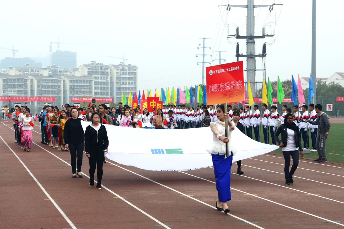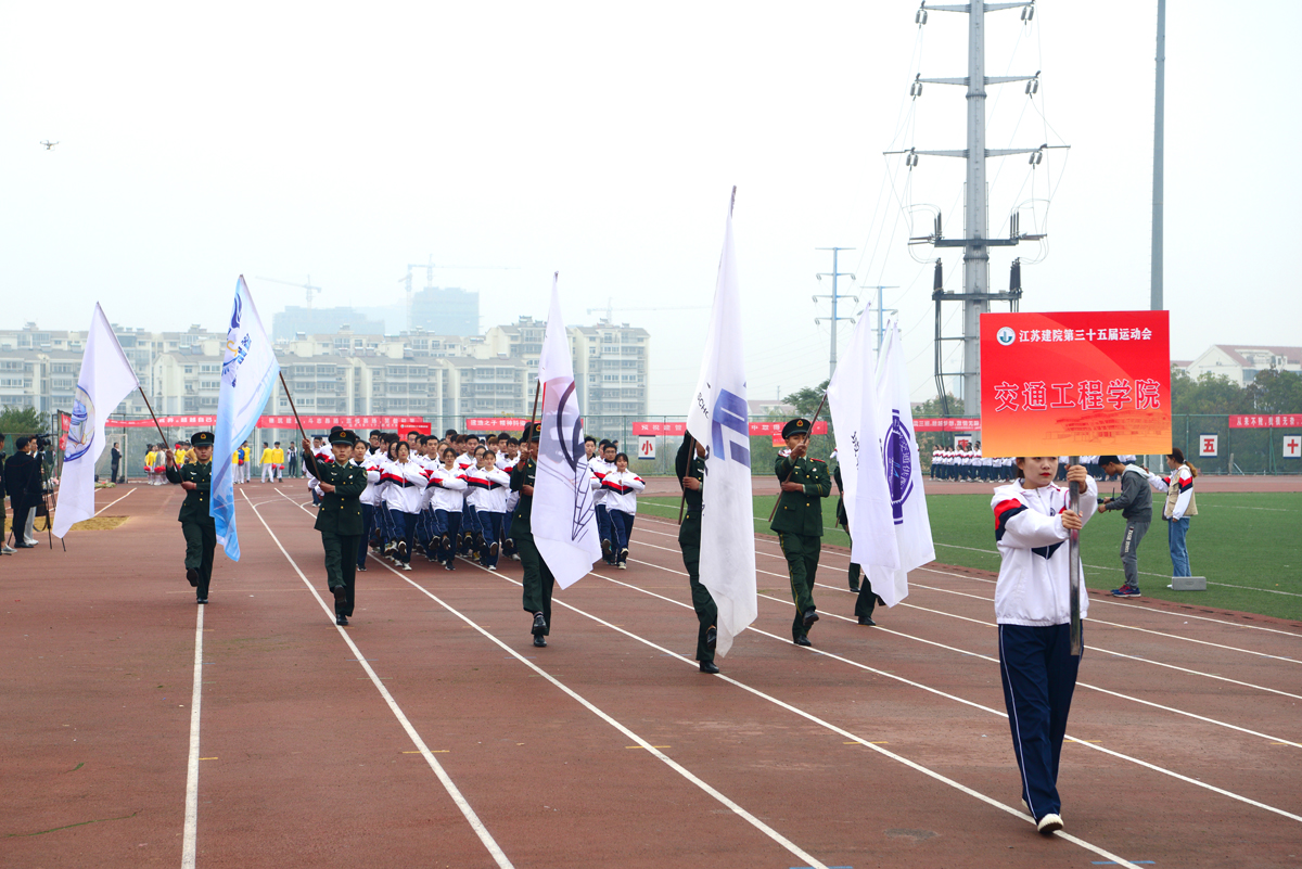 院长沈士德教授宣布第三十五届体育运动会正式开幕。开幕式伊始,伴随着激昂的运动员进行曲,各二级学院代表队排着整齐的队列、踏着有力的步伐进入体育场。入场结束后,举行了庄严的升国旗仪式。