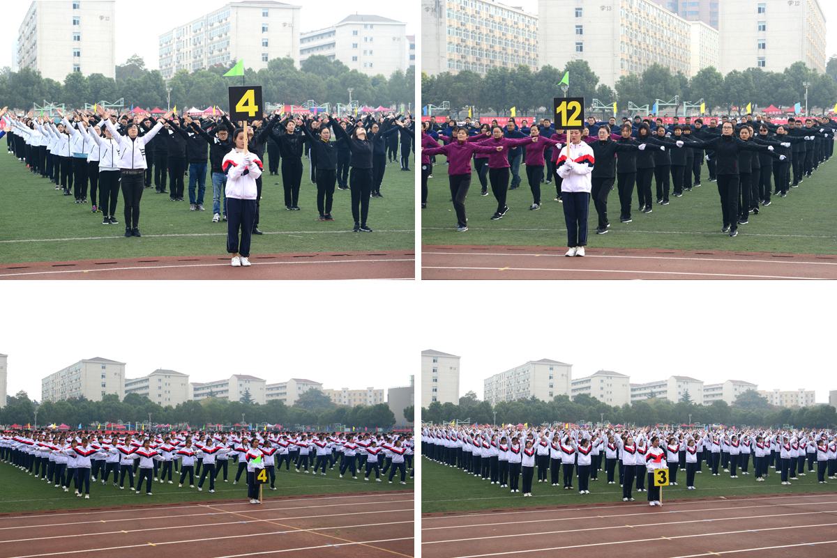 开幕式过后,各二级单位教职工代表队与19级新生代表队分别进行广播操比赛。