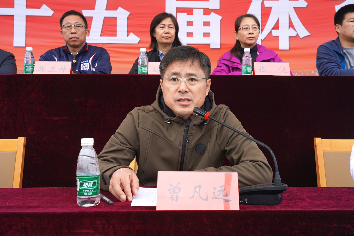 副院长曾凡远代表学校致辞。他向全体运动员、赛会筹备人员表达了问候与感谢。曾凡远表示,学校大力推进体育事业发展,加强学生体育锻炼,是切实增强学生身体素质、促进其身心健康的重要途径,也是学校不断提升人才培养质量的重要举措,符合国家努力培养德智体美劳全面发展的时代新人的迫切需要。
