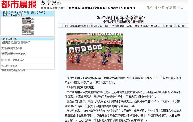 经过为期两天的激烈角逐,第三届中国大学生射箭(射艺)锦标赛10月27日下午在徐州闭幕,反曲弓17个项目、传统弓18个项目决出了名次。